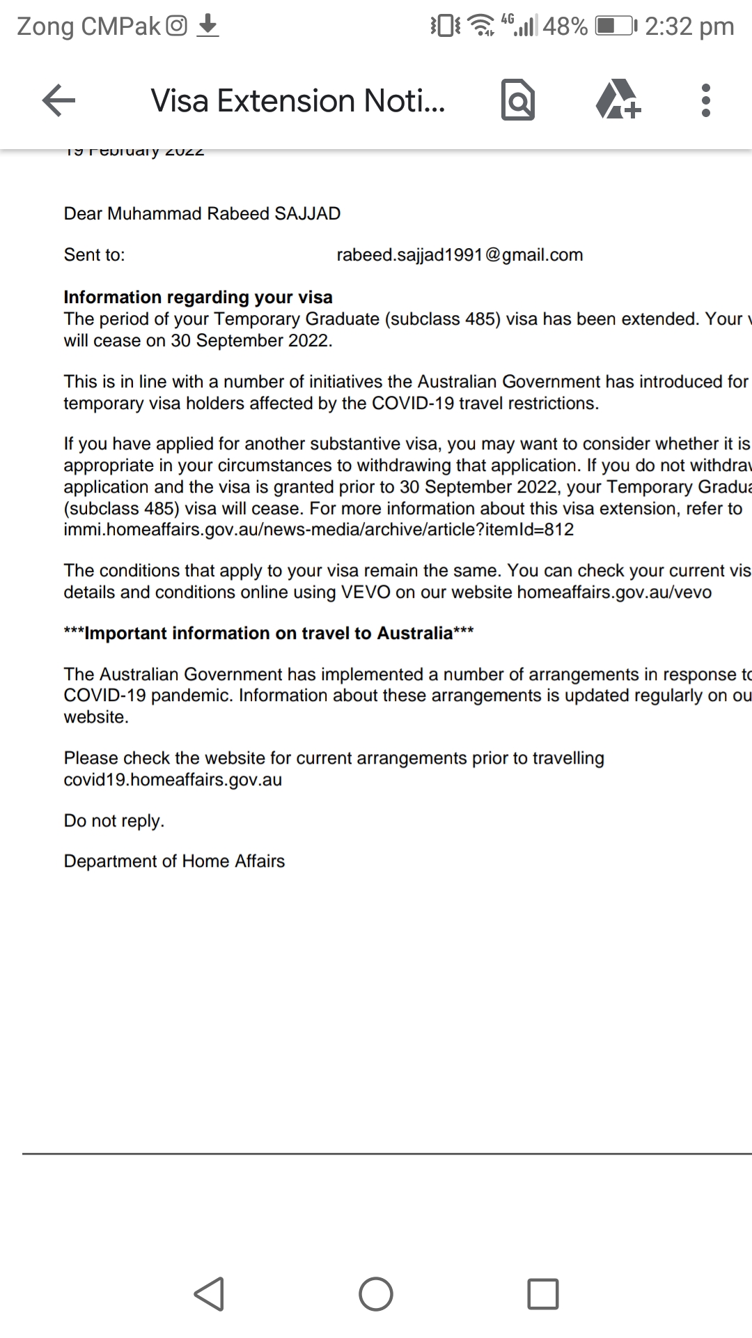 Hey guys I am confused. I am on expired bvb waiting for my 189 visa. I got this email today. My 485 expired on 11 March 2020. I applied for 189 on 25 February 2020. I landed my home country on 16 March 2020. I have applied for visit visa a week ago. Why i have been granted a 485 extension?